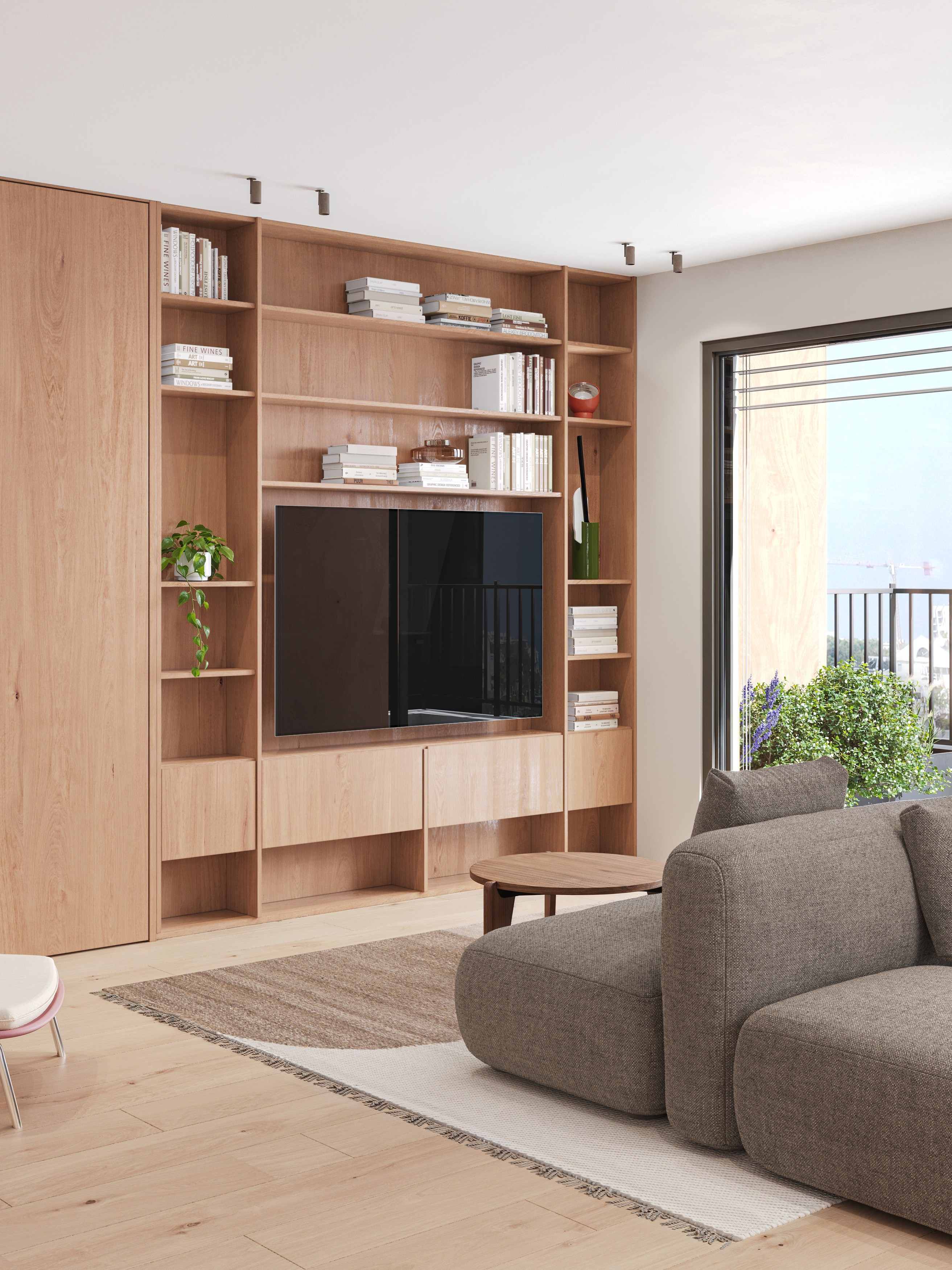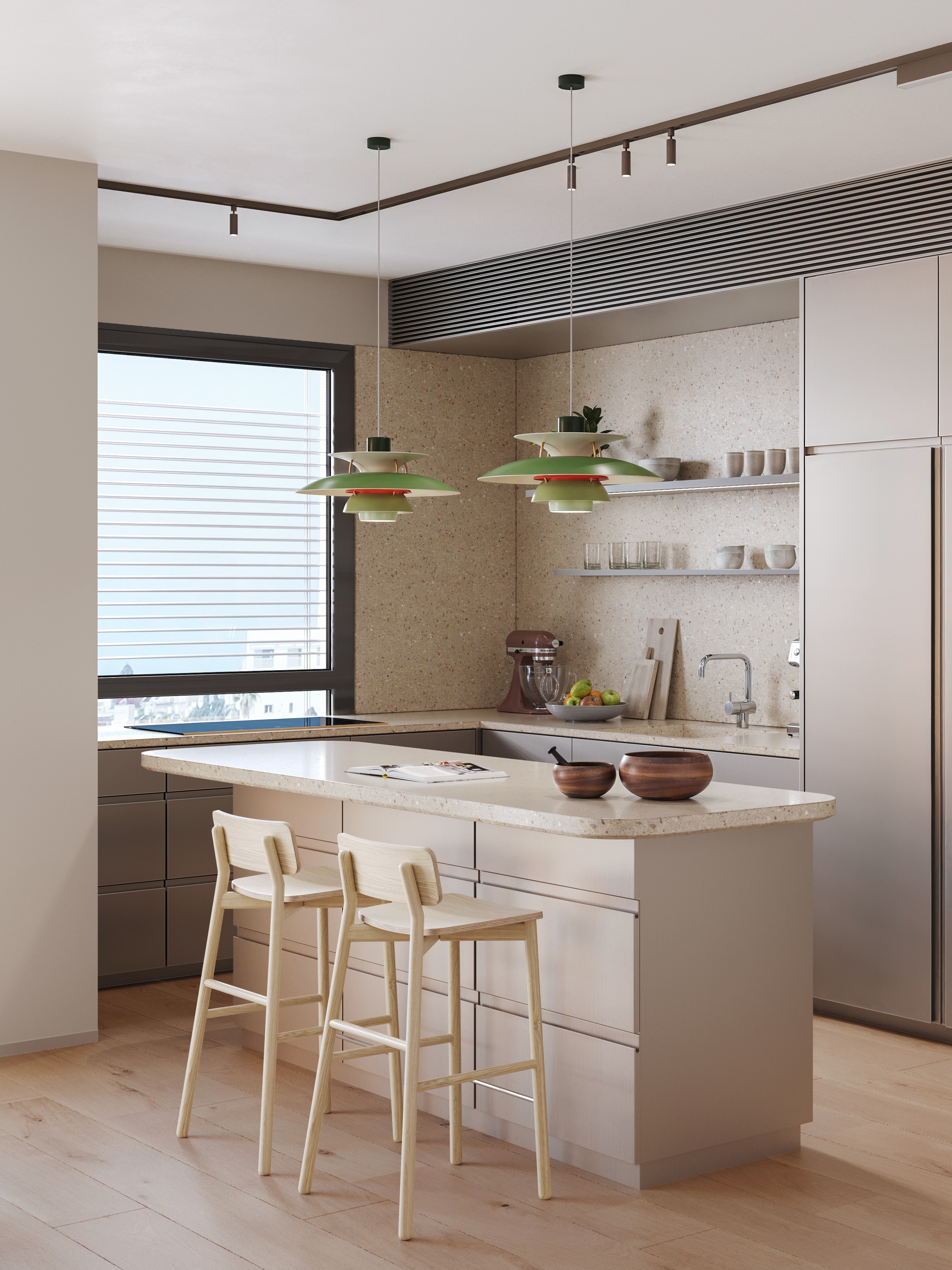 A study in warm minimalism, where soft tones, natural textures, and precise detailing shape a timeless modern interior. Each visualization captures a calm, refined atmosphere expressed through clarity, balance, and photoreal presence.
